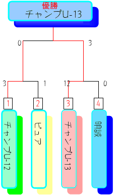| チャンプU-13 | 2 ○ 1 | − | 16 ○ 0 | 6 | 18 | 1 | 17 | 1 |